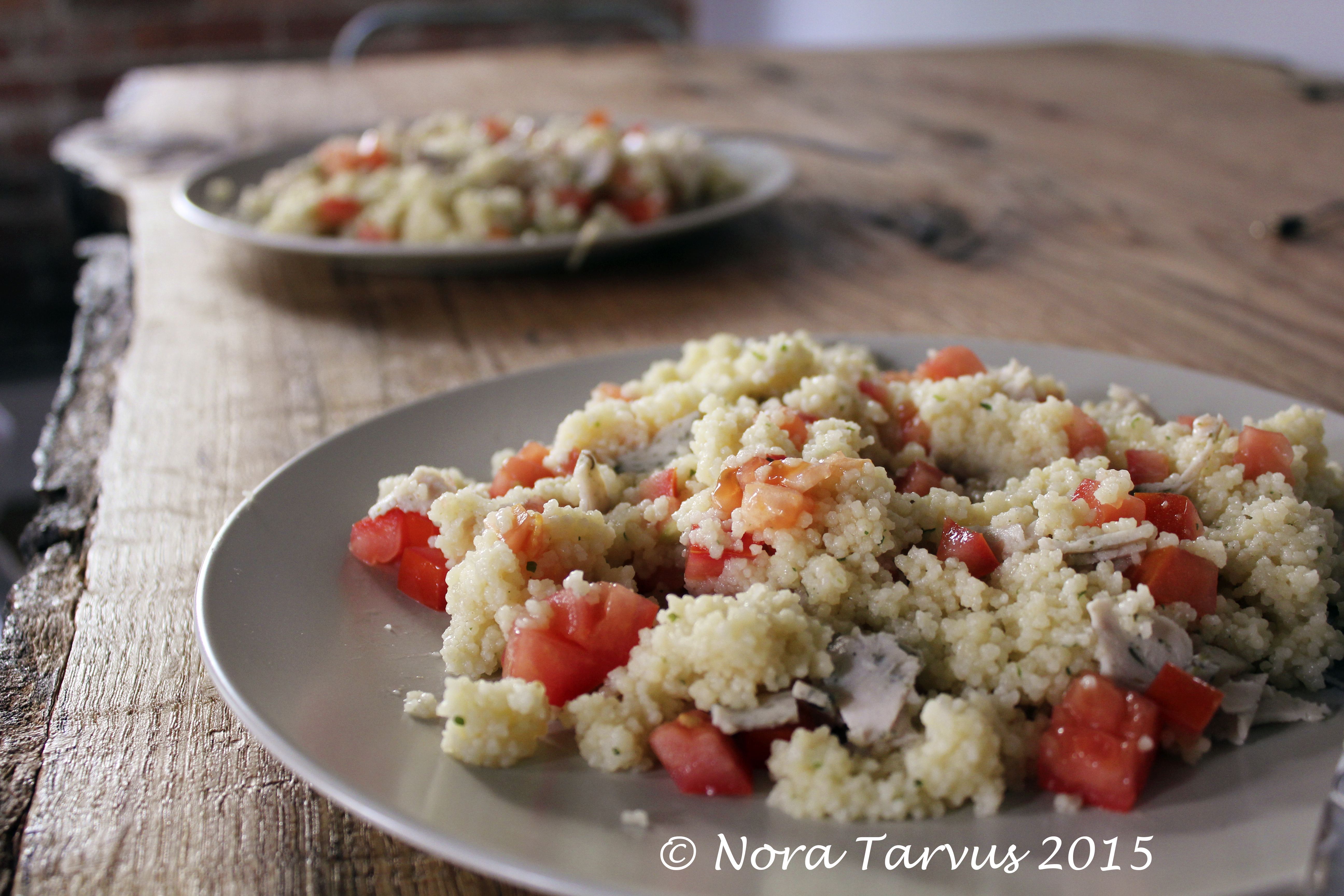 5 Minutes Couscous for 2 by Dreamer Achiever Nora 1 package couscous (any flavor you like) 1/2 avokado 1/2 tomato 2 slices of (herb flavored organic) turkey – Cook the couscous, chop other ingredients, mix all, enjoy 😀